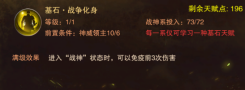 最后战神的需要其他系点天赋100点才能解锁 属于进阶天赋(更强力)