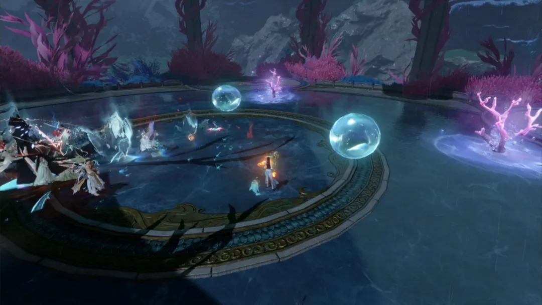 7、P2阶段把BOSS拉至场地中间方便应对机制。出现紫珊瑚,被点名红圈的6个玩家需分散炸掉,