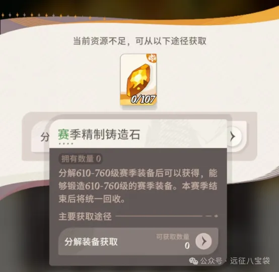 因为打造600级装备使用的赛季初级锻造石紧缺